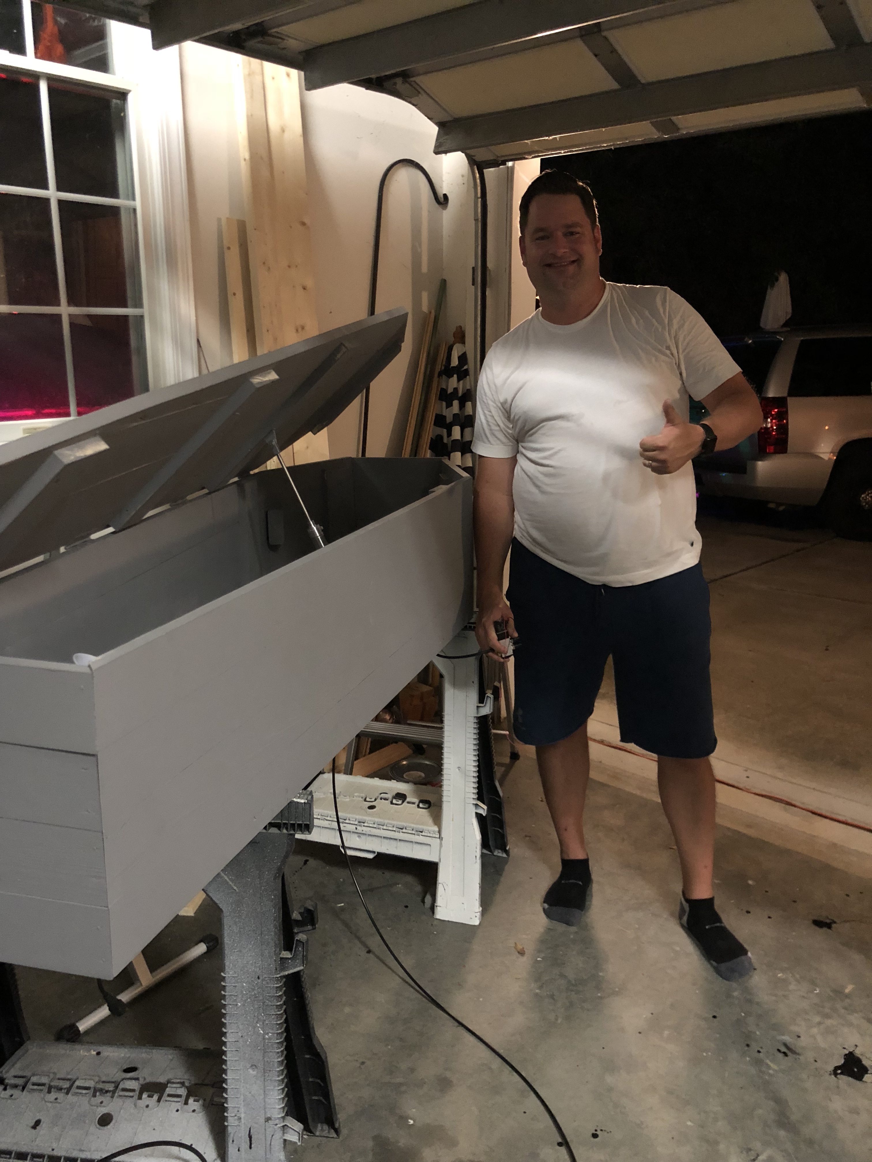 After a coat of grey paint I hooked up the pneumatics and tested out the speed of the opening and closing of the lid. The speed can be adjusted if you use the proper type of fitting.