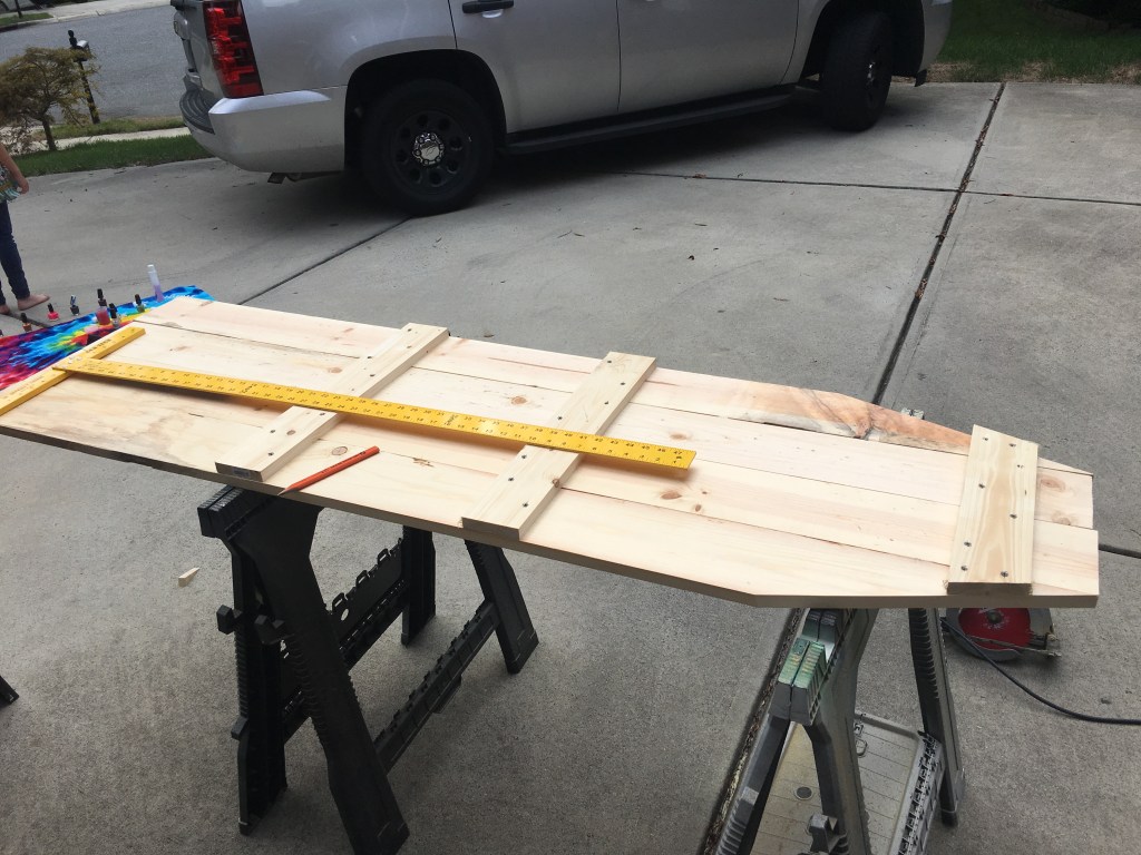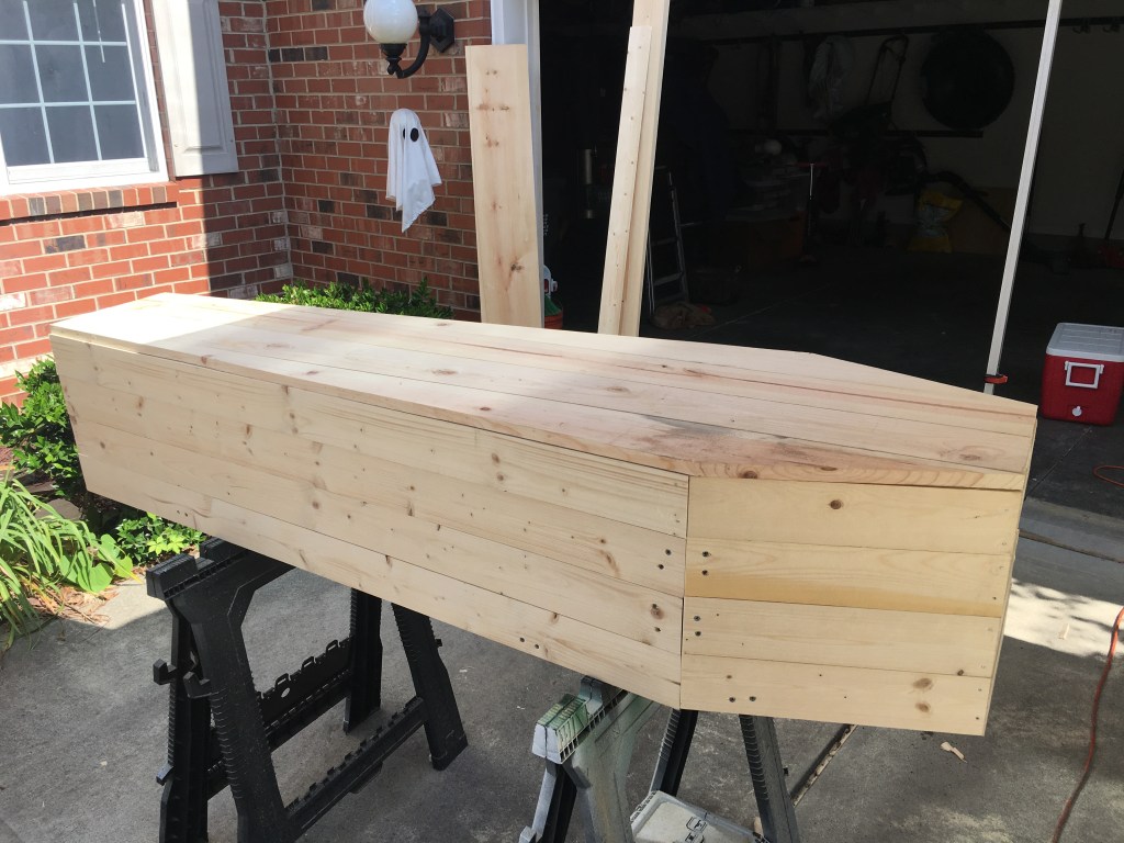 I built the coffin using four pine 1x6s for the top and four 1x4s for the sides. I wanted a rougher look that light would creep through.